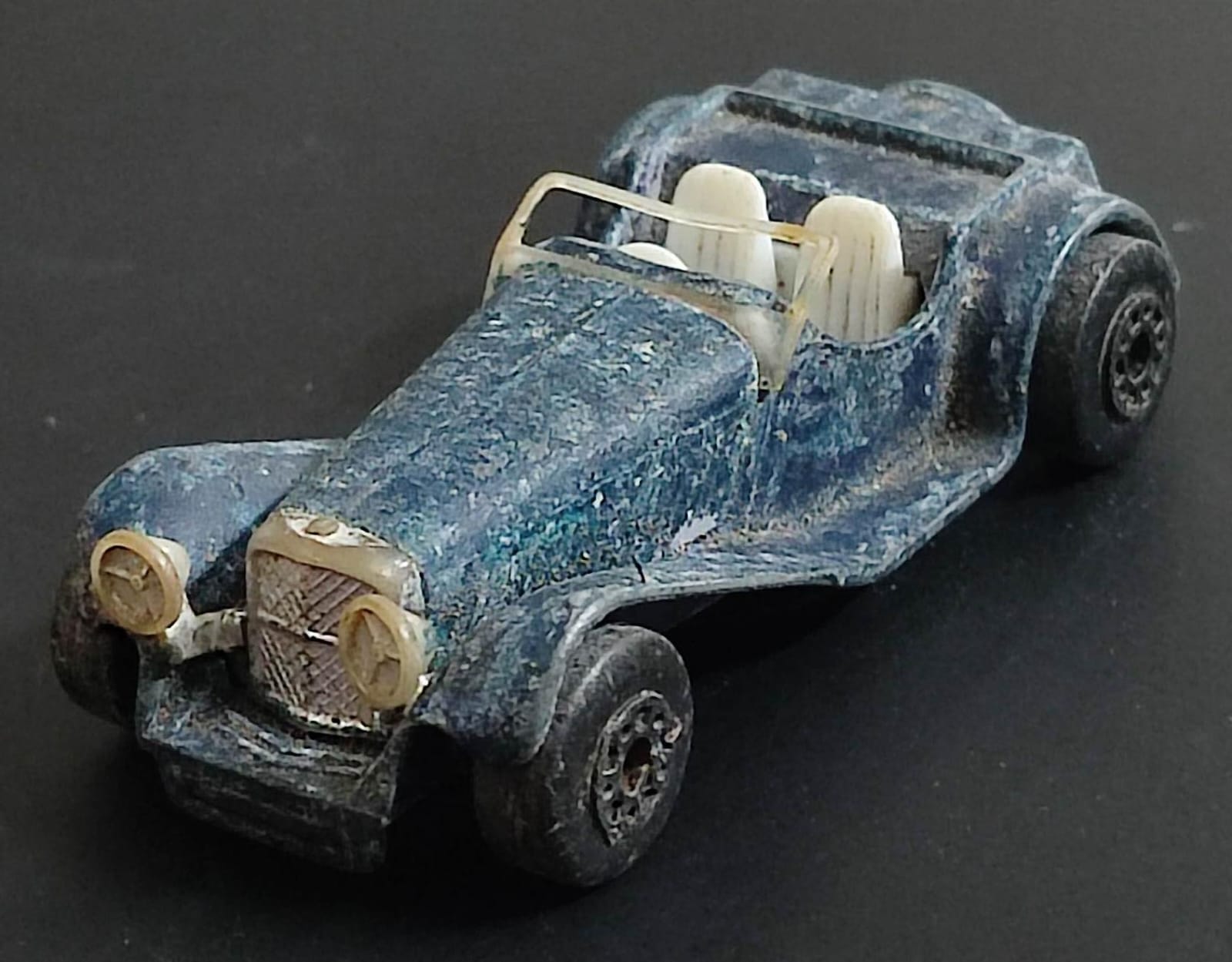 Front wheels jammed, Wind screen damaged, colour oxidised.